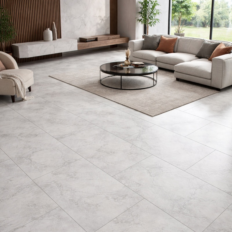 Ce carrelage est idéal pour les espaces résidentiels et commerciaux, tels que les salons, les bureaux ou les magasins. Sa teinte neutre s'harmonise avec une grande variété de styles de mobilier et de décoration. Sa conception polyvalente le rend adapté à de nombreux projets d'aménagement intérieur.