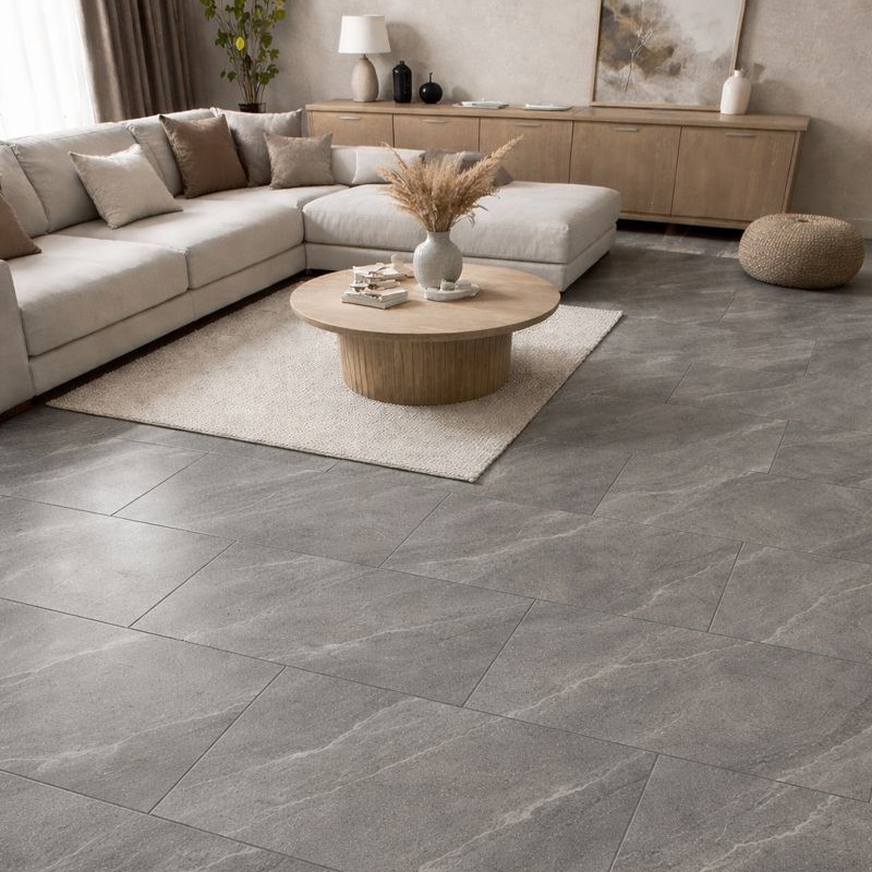 L'aspect pierre grise offre un style visuel naturel et sobre. Il apporte une sensation d'ordre et de sérénité aux sols intérieurs sans les alourdir. Ce style s'accorde aussi bien avec les concepts minimalistes que contemporains.