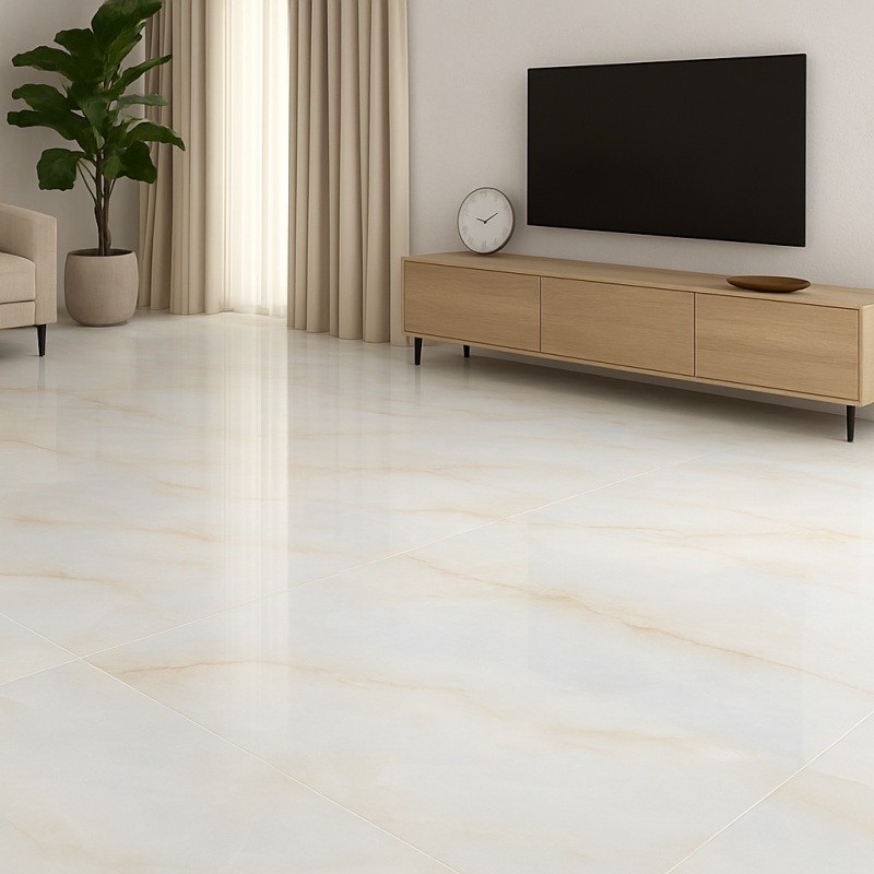 La glaçure polie offre un fini brillant et réfléchissant qui met en valeur l'éclairage intérieur. Elle crée un effet net et soigné, idéal pour les espaces de vie et les locaux commerciaux. Sa texture lisse contribue également à une impression générale plus raffinée.