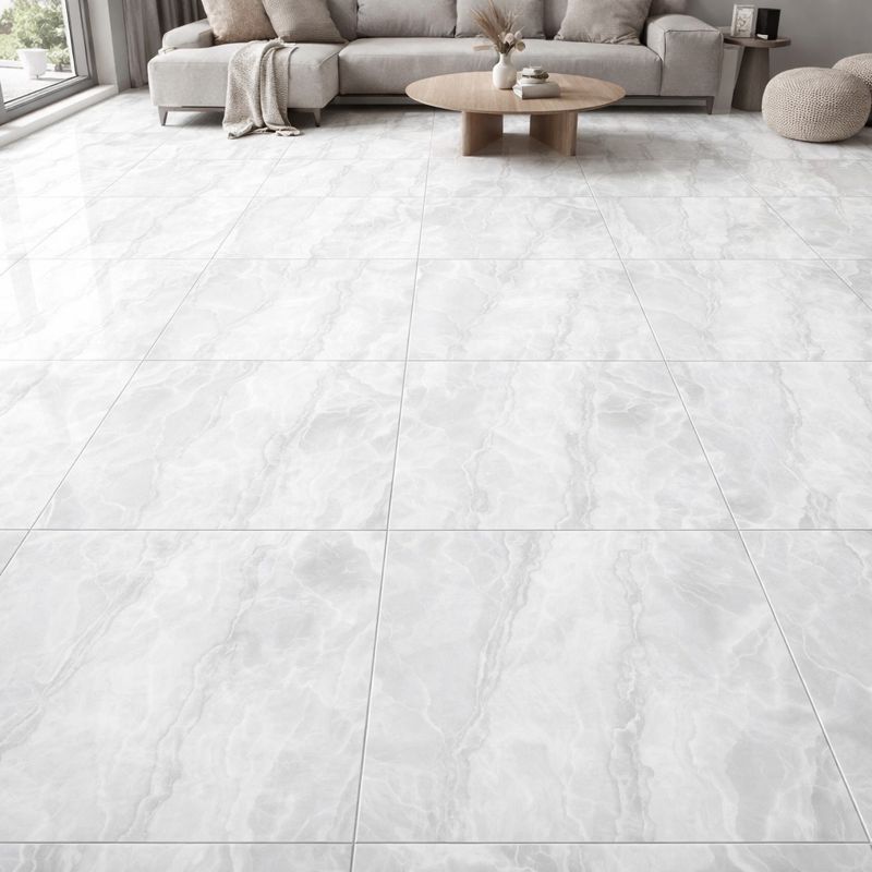 Ce carreau carré imite le marbre clair avec des détails de surface doux et harmonieux. Sa finition polie rehausse la luminosité et contribue à créer une impression d'espace et de propreté. Son style s'adapte à une grande variété d'agencements, des espaces résidentiels aux espaces commerciaux.
