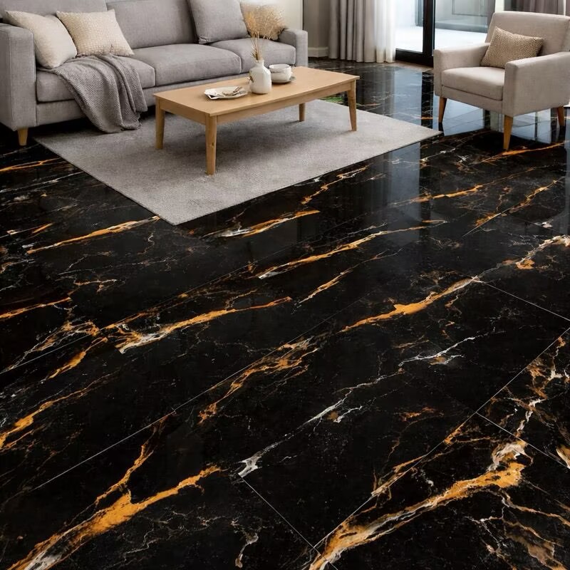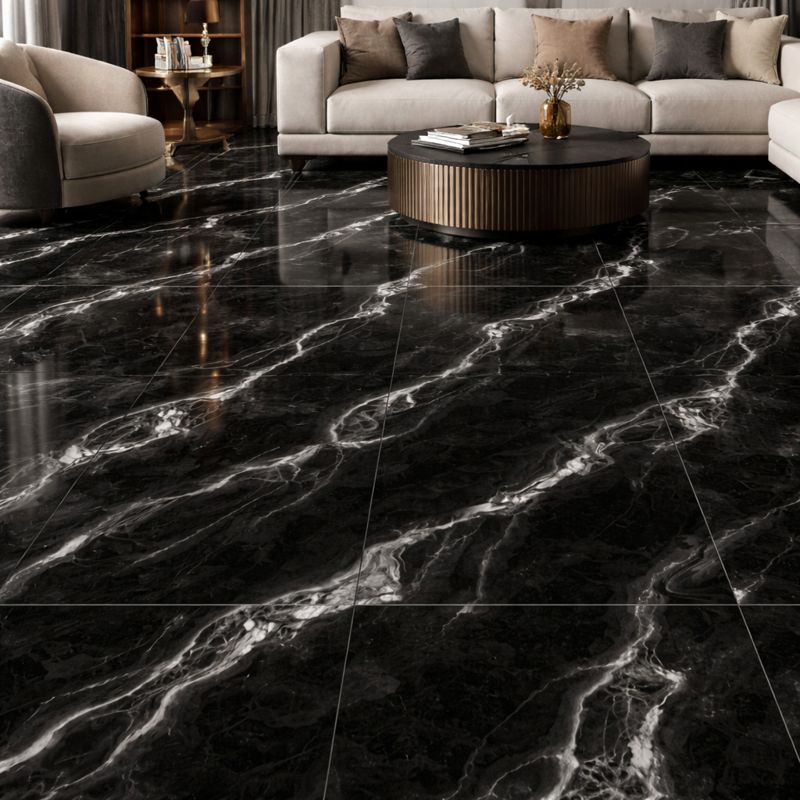 La texture du marbre noir confère un charme intemporel et raffiné à toute pièce. Sa surface polie offre un fini lisse et brillant qui reflète magnifiquement la lumière. Ce style rehausse l'ambiance générale des intérieurs et leur donne une allure plus luxueuse.