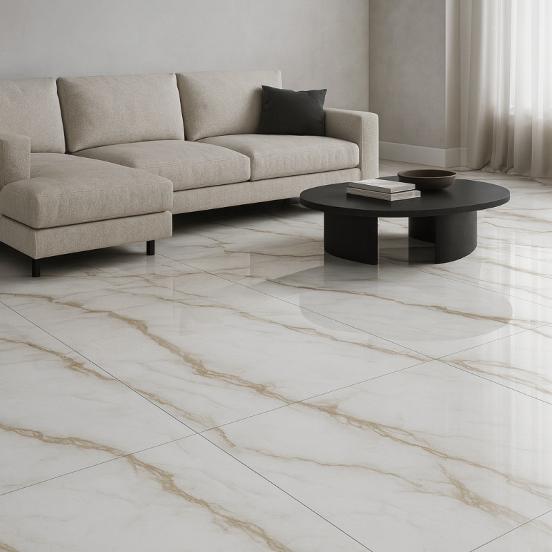 Sa teinte blanche immaculée convient aux salons, cuisines, halls d'entrée et espaces commerciaux. Son aspect marbré s'harmonise facilement avec le bois, le métal et un mobilier minimaliste. Les designers peuvent l'intégrer à des projets aussi bien contemporains que classiques.