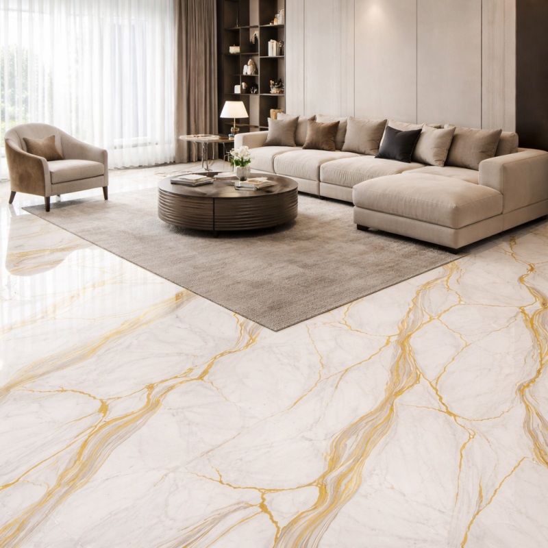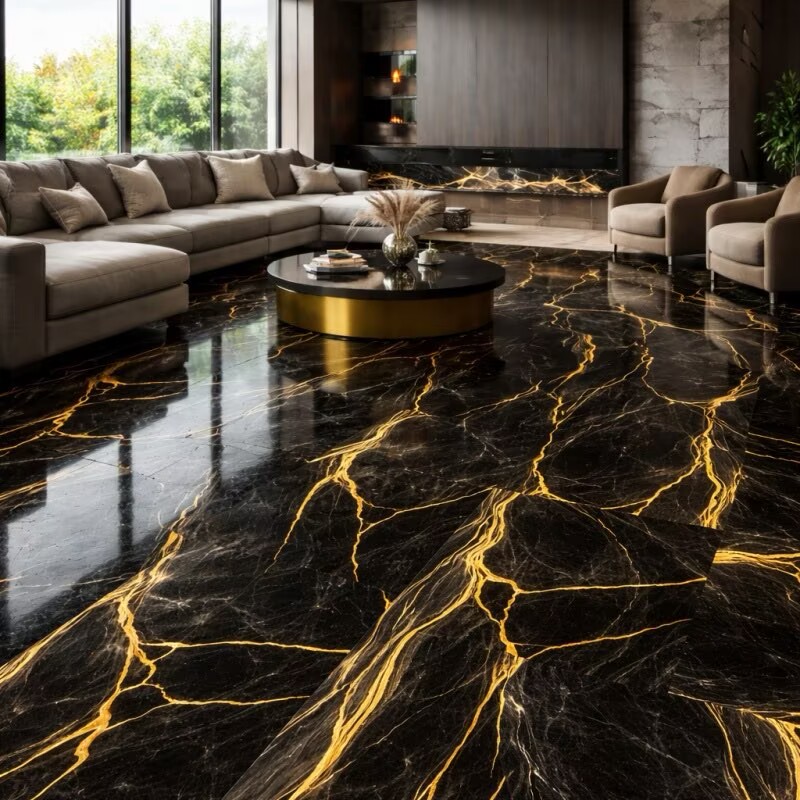 Conçu pour répondre aux besoins des intérieurs exigeant à la fois contraste visuel et robustesse, ce carrelage associe des teintes audacieuses à des veinures raffinées pour un impact visuel maximal. Sa surface brillante améliore la luminosité et la netteté tout en garantissant une grande résistance à un usage quotidien. Il convient parfaitement aux espaces intérieurs tels que les résidences, les hôtels, les bureaux, les showrooms et les environnements commerciaux à la recherche d'un revêtement de sol durable et esthétique.