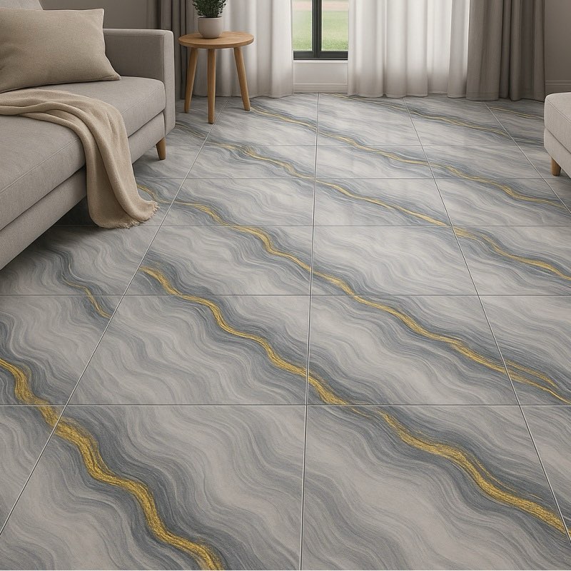 Le motif veiné d'or confère une allure haut de gamme qui sublime les intérieurs modernes. Sa surface polie rehausse la luminosité et apporte une profondeur raffinée à tout espace. Ce design rend ce carrelage idéal pour les clients en quête d'un effet décoratif d'exception.