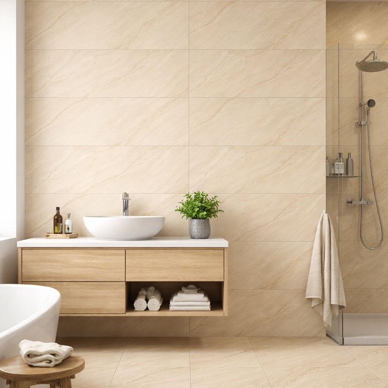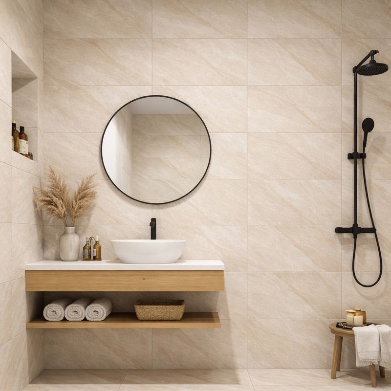 Le corps en porcelaine offre une structure stable et une épaisseur constante pour une pose murale optimale. Chaque carreau est produit selon un procédé de cuisson contrôlée garantissant une qualité uniforme. Ceci assure une pose aisée et des résultats prévisibles.