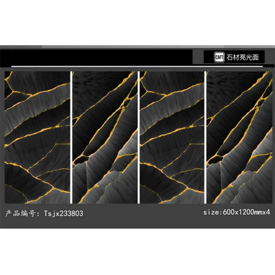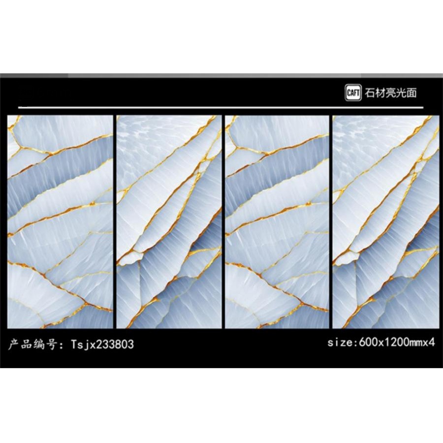 La surface brillante offre un éclat et une douceur uniformes à chaque pièce. Le motif effet marbre, orné de veines dorées, est imprimé de façon homogène pour un rendu équilibré. Ceci permet d'obtenir des résultats uniformes, même pour les installations de grande envergure.