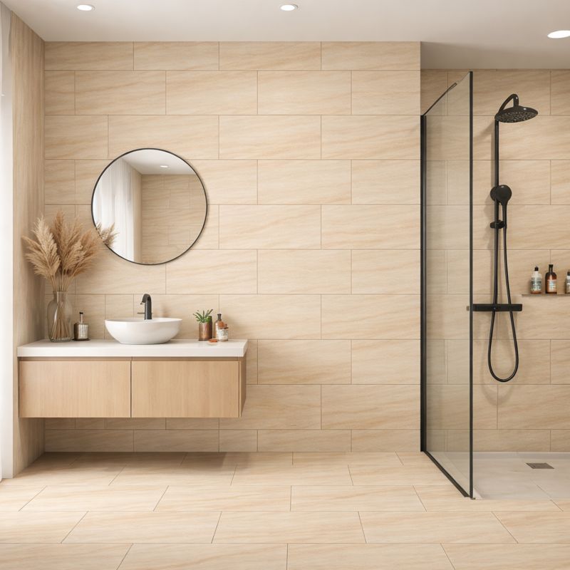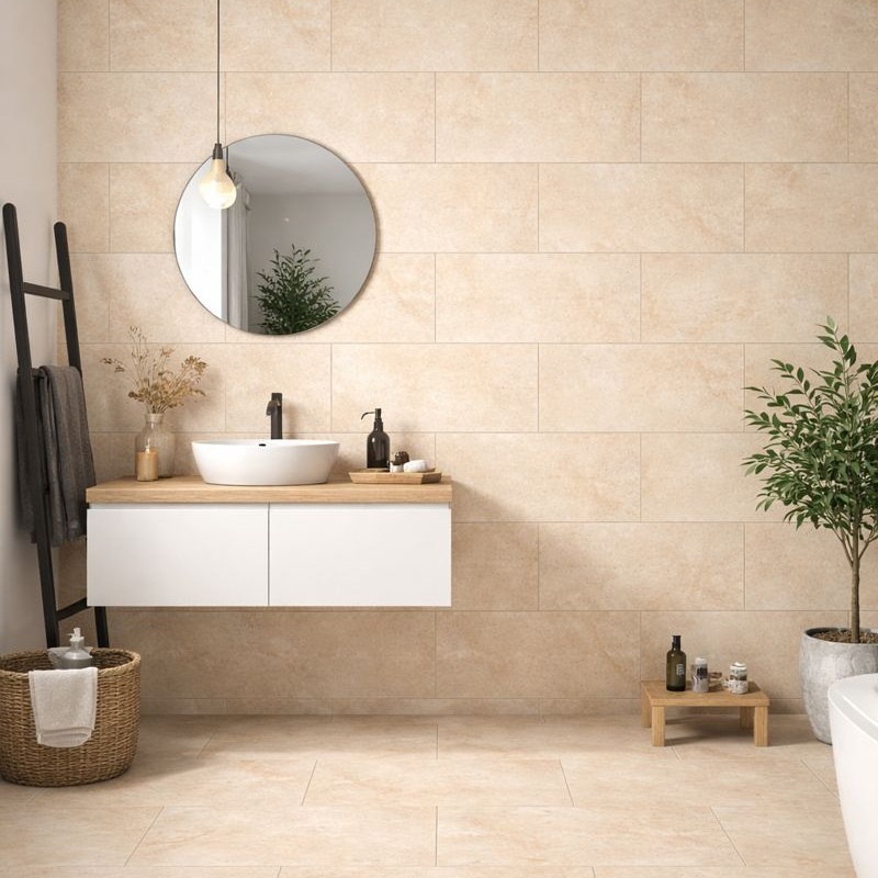 Sa teinte beige clair offre une base neutre et polyvalente qui s'harmonise avec différents styles de décoration. Elle se marie facilement avec d'autres matériaux comme le bois, le métal et la pierre, ce qui la rend idéale pour les projets d'aménagement intérieur résidentiels et commerciaux.