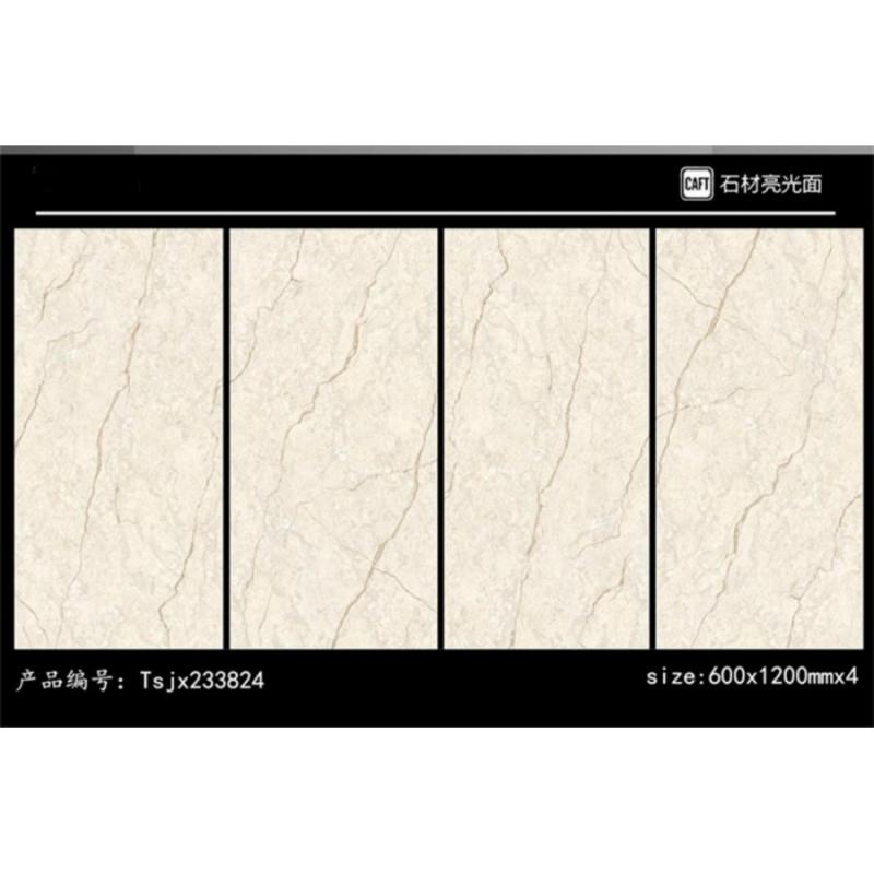 Son effet marbre neutre convient aux salons, couloirs, chambres et espaces commerciaux. Sa surface brillante s'harmonise avec les meubles en bois, les éléments métalliques et une décoration minimaliste. Les designers peuvent facilement l'intégrer à différents agencements de sols intérieurs.