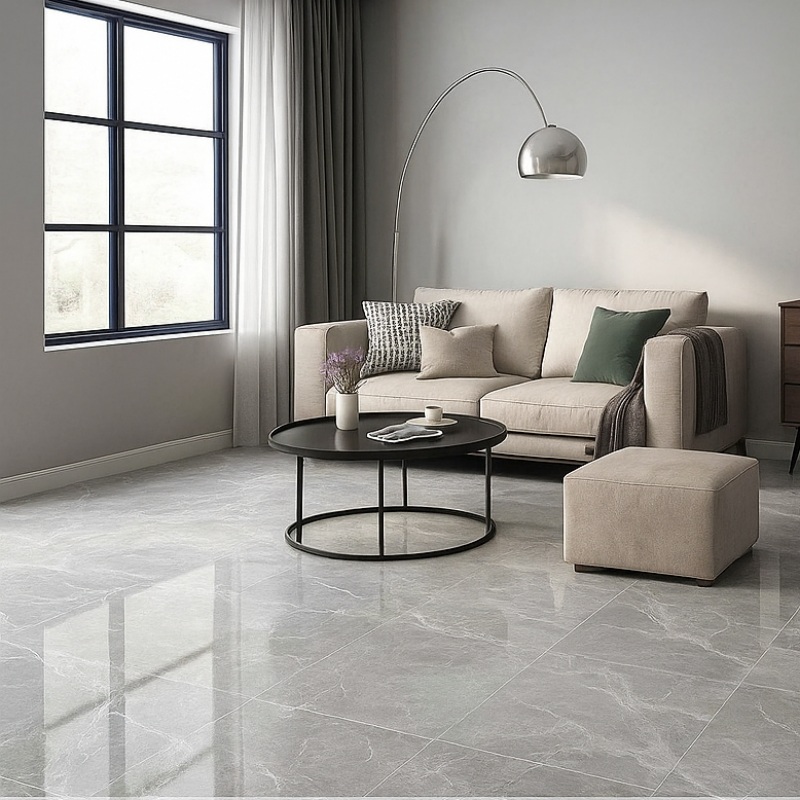 Ce carrelage en céramique élégant présente un design raffiné inspiré du marbre et une surface lisse et polie qui sublime tout intérieur moderne. Son format 600 x 600 mm offre un rendu harmonieux et uniforme, convenant aussi bien aux sols qu'aux murs. Conçu avec précision et robustesse, il allie esthétique luxueuse et performance pratique pour une utilisation durable.