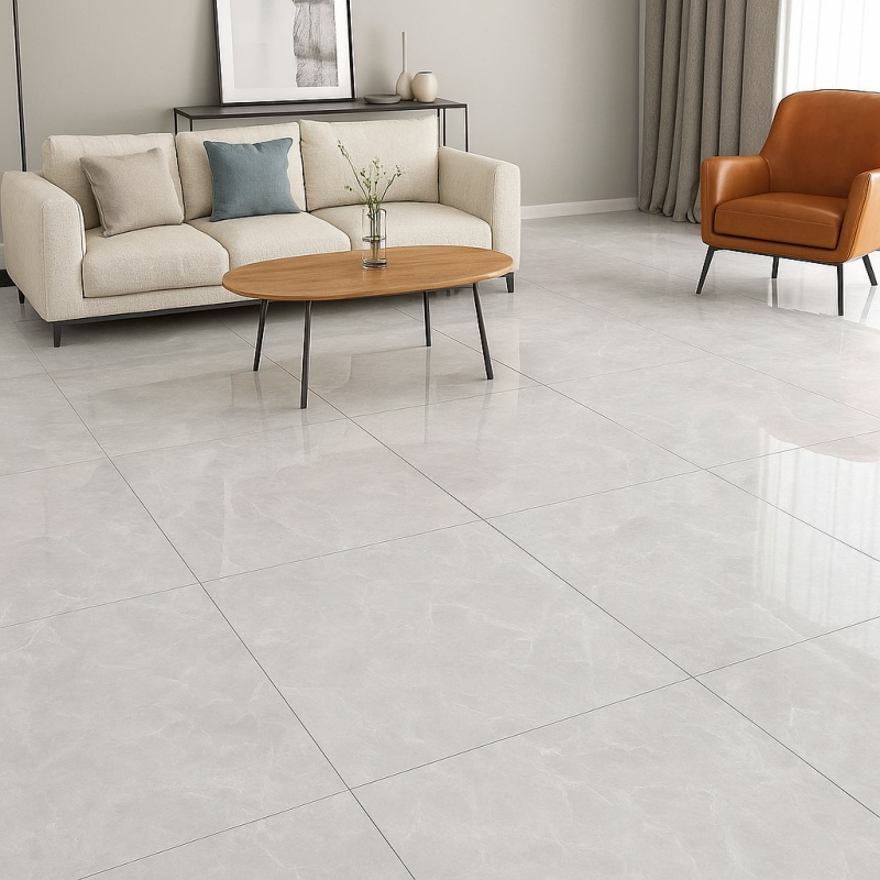 Ces carreaux peuvent être utilisés au sol et aux murs des salons, salles de bains et cuisines. Leur aspect marbré neutre s'harmonise avec de nombreux styles d'intérieur, ce qui en fait un choix polyvalent pour les aménagements résidentiels et commerciaux modernes.