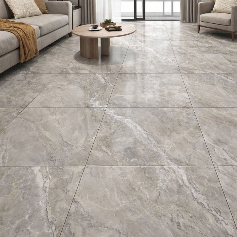 This product offers a modern marble-inspired appearance in soft grey tones with a clean and balanced surface look. The design brings a calm and contemporary feel to interior flooring spaces. Its overall style suits residential and commercial interiors seeking a refined and practical floor solution.